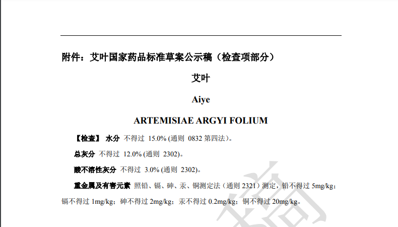 隨著《中藥法典》標(biāo)準(zhǔn)修訂進(jìn)程的推進(jìn),藥典委官網(wǎng)近期陸續(xù)發(fā)布多個(gè)標(biāo)準(zhǔn)公示,均與中藥重金屬及有害元素控制相關(guān)。其中,“關(guān)于黃連國(guó)家藥品標(biāo)準(zhǔn)草案的公示”、“關(guān)于艾葉國(guó)家藥品標(biāo)準(zhǔn)草案的公示”、“關(guān)于川芎國(guó)家藥品標(biāo)準(zhǔn)草案的公示”,對(duì)相關(guān)檢測(cè)項(xiàng)擬進(jìn)行修訂。公示期為30天。通知表示,若有異議,可及時(shí)在線反饋,并附相關(guān)說(shuō)明、實(shí)驗(yàn)數(shù)據(jù)和聯(lián)系方式。