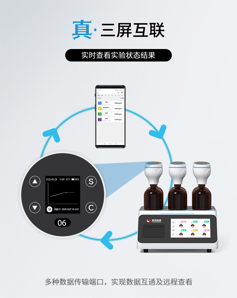 簡要描述: 符合國標(biāo)《(HJ505-2009)水質(zhì)五日生化需氧量(BOD5)的測定稀釋與接種法》反應(yīng)進(jìn)程, 以《ISO9408-1999》為依據(jù)制造,采用無汞壓差法,無汞污染且數(shù)據(jù)準(zhǔn)確可靠,主機(jī)、測試帽、小程序三屏互聯(lián),信息互通使用更加方便。