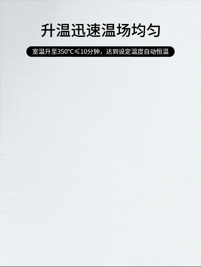 2.升溫迅速溫場均勻,室溫升至350℃≤10分鐘,達(dá)到設(shè)定溫度自動(dòng)恒溫;