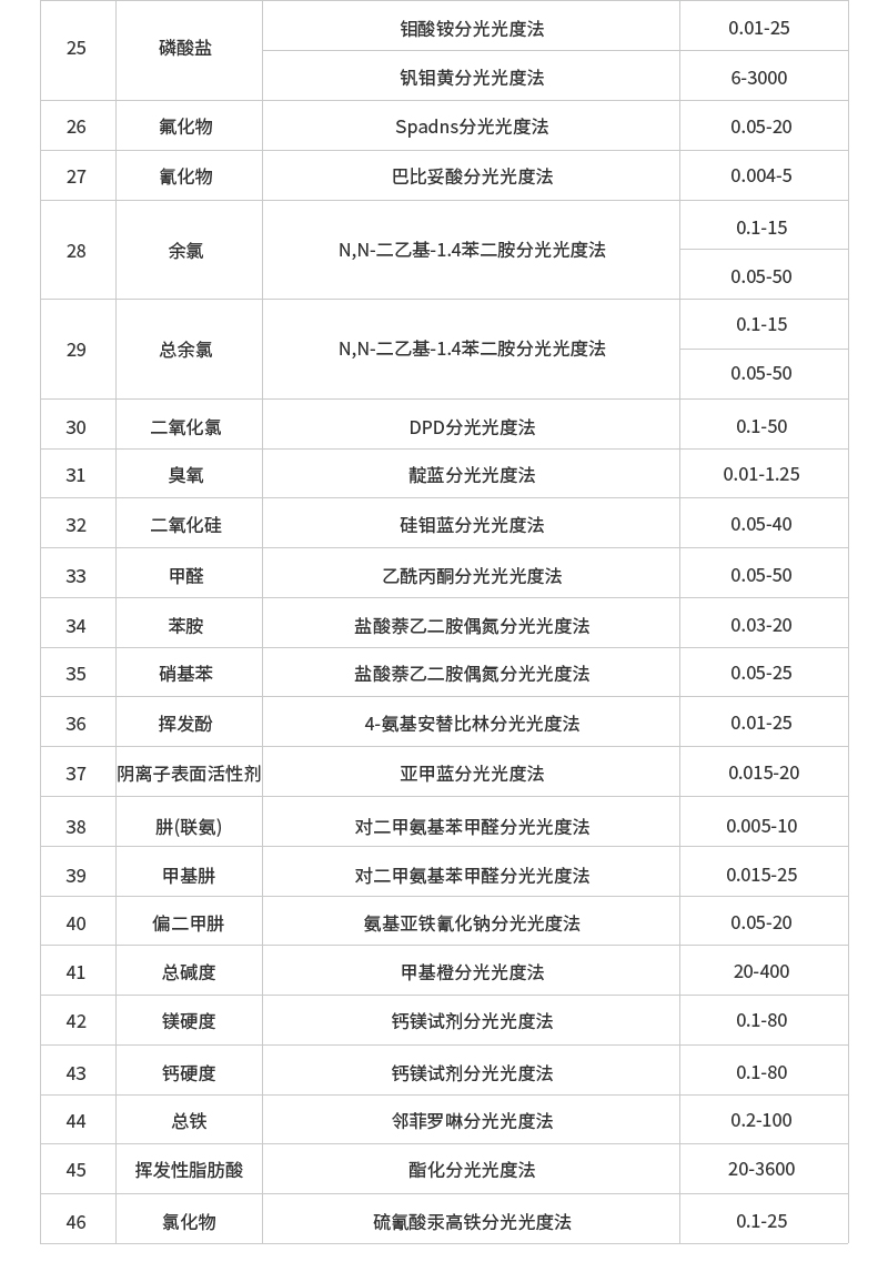 檢測限:COD高量程3mg/L;COD低量程0.5mg/L
